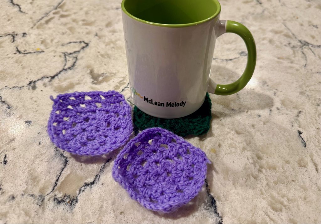 While one of our musicians was playing, a kind elderly woman quietly stood up from her seat and walked towards the parents and musicians in the room. In her hands were some small circles, in different shades. The small crocheted circle, soft and colorful. The one we held was purple with tiny white stitches, but she had made many others too—like the colors green, blue, red, and more. Each one was bright and cheerful, like little handmade flowers. You could tell she put care into every stitch, and the colorful designs made her gift feel extra special. When the last musician, April, concluded our performance, we handed out all the gifts to the musicians, all grateful for the gift.